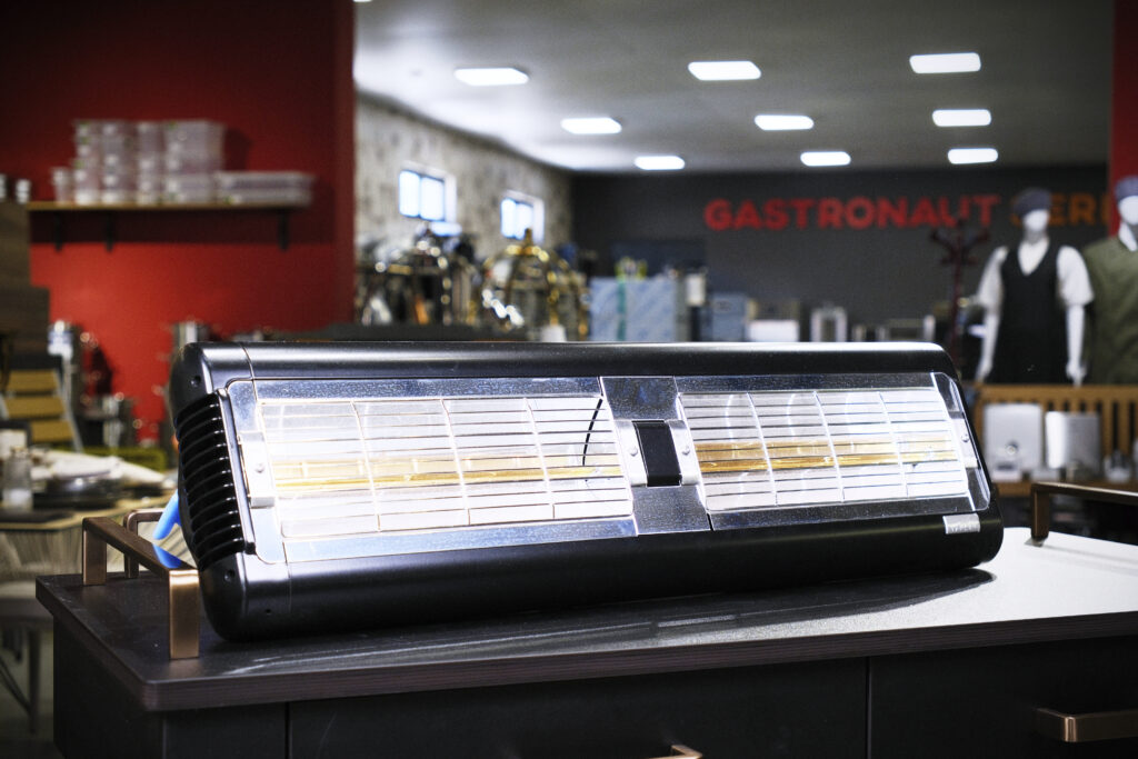 Izdržljiv je u svim vremenskim uslovima, a kućište od kvalitetnog aluminijuma otporno je na koroziju te ga možete koristiti i u baštama restorana i kafea, kao i na terasama. Ima vrhunsku dugotrajnu infracrvenu lampu i polirani parabolični reflektor koji poboljšava distribuciju toplote. Radi na jednostavnom principu proizvodnje toplotnih zraka, nalik na sunce, te uspeva brže da zagreje prostor nego što to mogu uređaji koji rade po principu izduvavanja toplog vazduha.